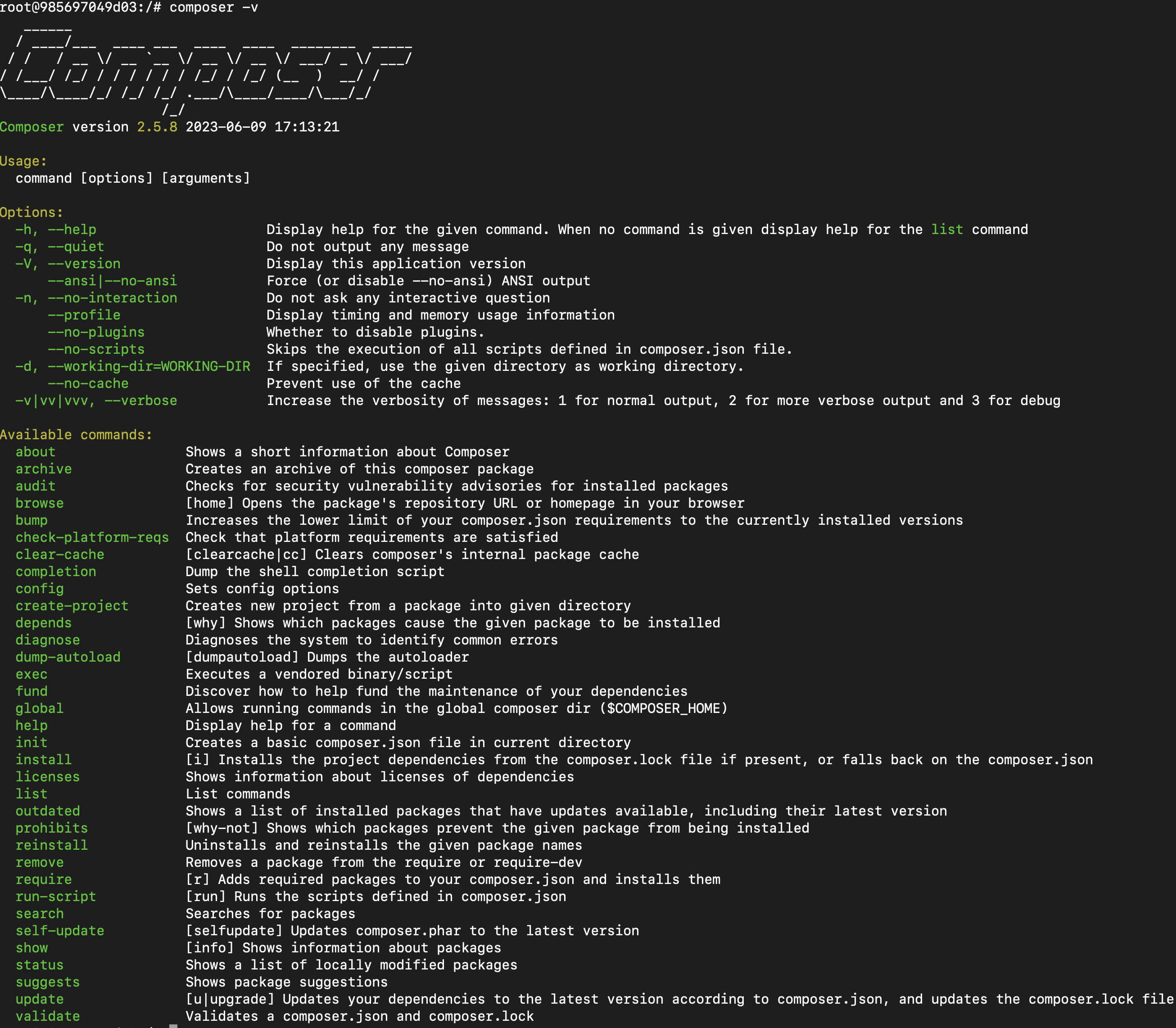 # composer 버전 확인